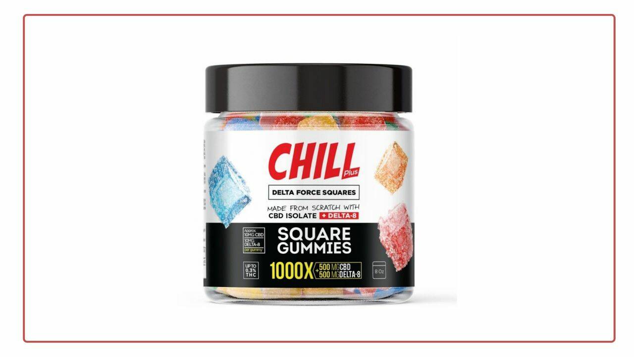 The product that earned them a spot on our list is the Chill Plus Delta Force squares. These hybrid gummies contain an equal mix of delta-8 THC and CBD. The 4,000 mg pack of these gummies contains CBD and delta-8 THC in 2,000 mg each. With 200 gummy cubes in a pack, it means that each gummy contains 20 mg of delta-8 THC and 20 mg of CBD isolate. The gummies in this pack are of three different tropical flavors- watermelon, blueberry, and mango.