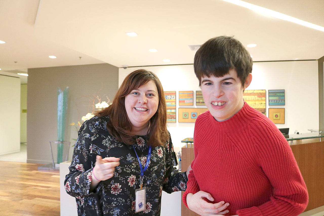 According to the Bisbees, Paige tried a couple of job tasks but she didn’t seem interested in them, as she was easily distracted. Paige’s counselor realized she was a “social butterfly” and needed to be in an environment where she could engage with others. The AtWork! counselor helped identify the things Paige was good at and the things that interested her, then the counselor matched her with a specified job at David Wright Tremaine Litigation law firm in Bellevue, who advocates for inclusive employment. The law firm currently employs two AtWork! clients.