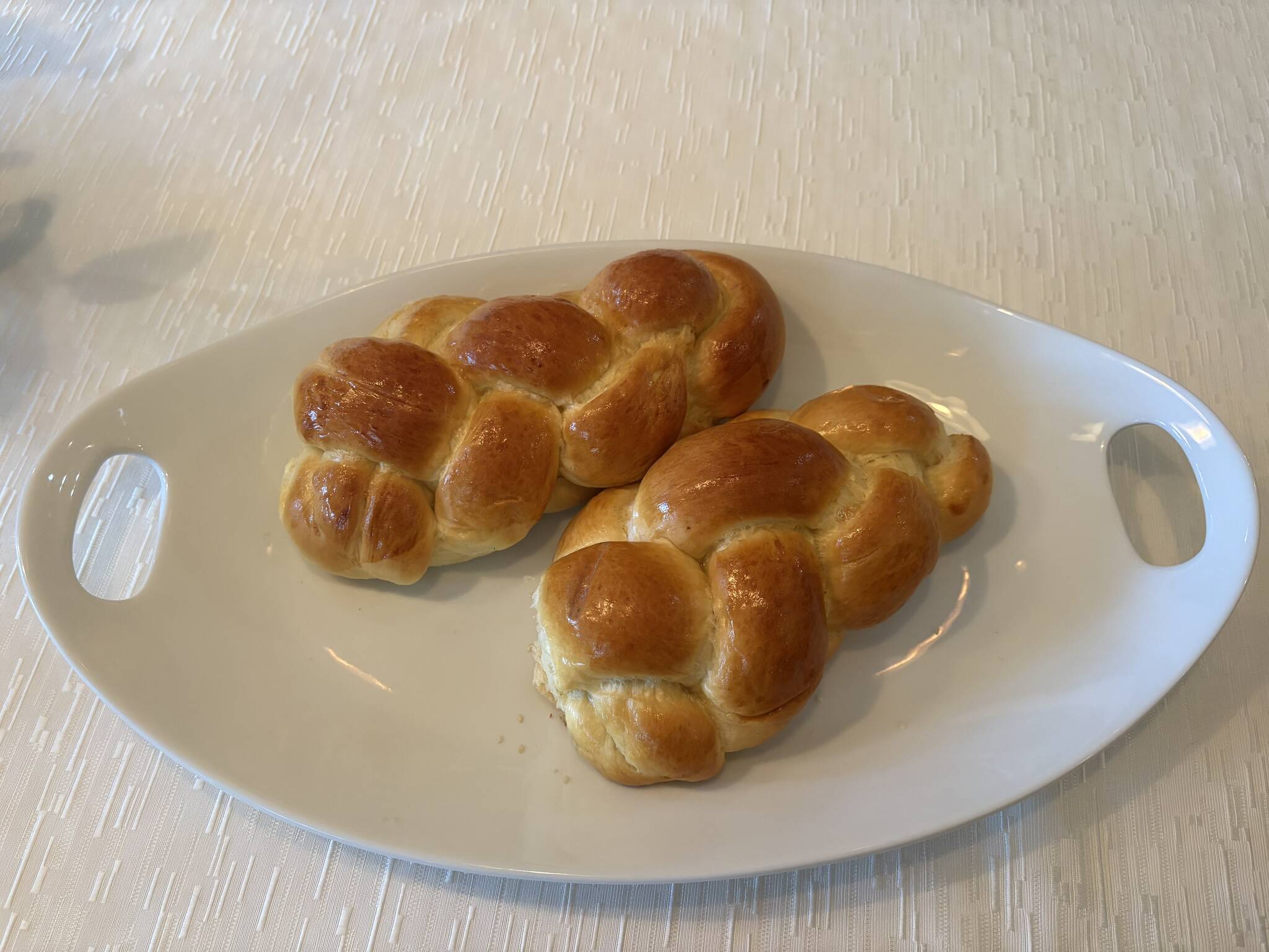 There are different styles of challah — big, small, sweet, and savory. And on Mercer Island, there are now three places where challah is baked on Fridays and sold fresh that day. With my family gathering for a Sabbath dinner, I conducted a blind testing during our Friday night meal. The judges included granddaughters ages six and nine, my son and his partner, my husband and me. All of us are veteran challah chompers (no guttural inflection here – think cha-cha).