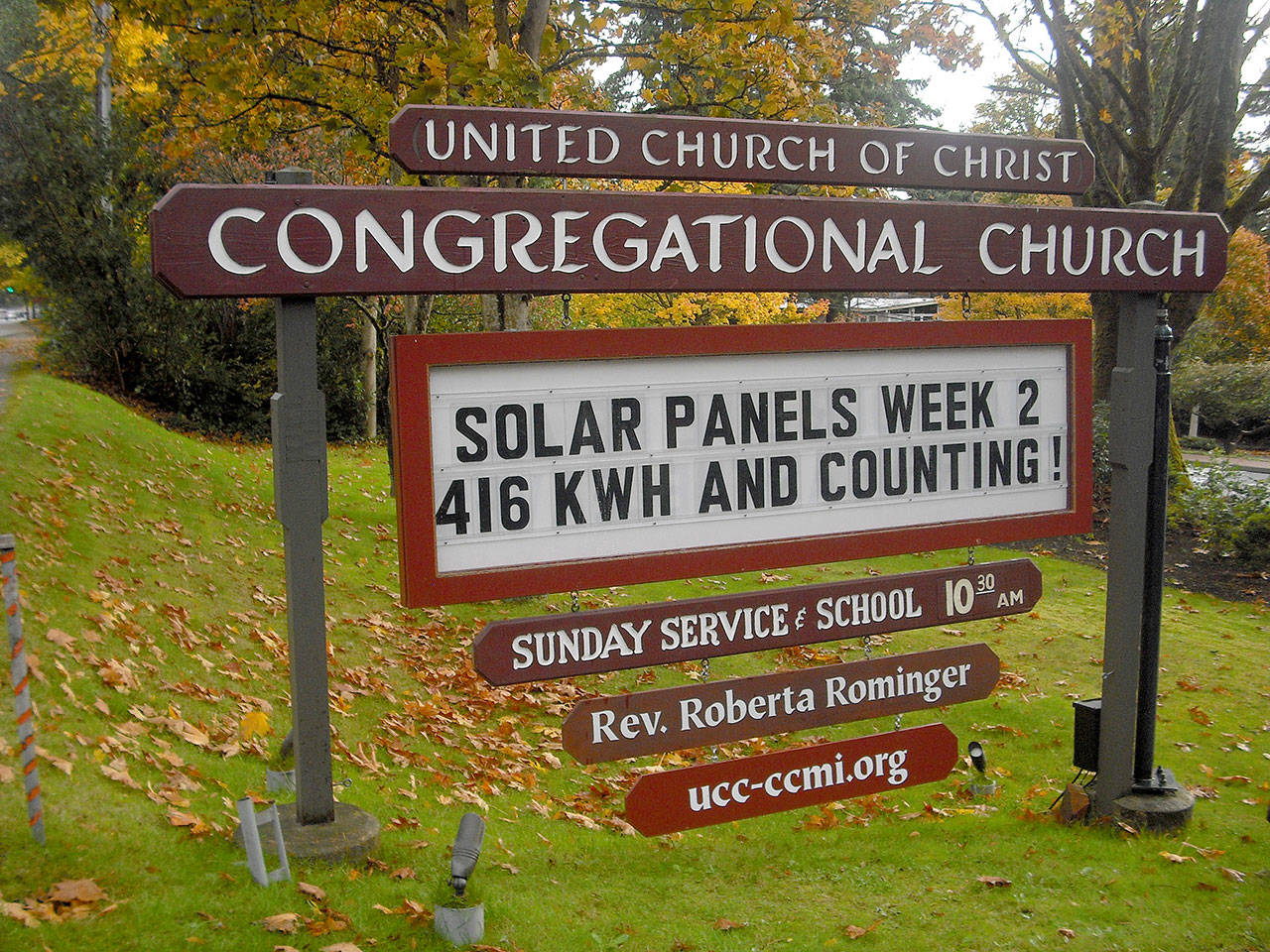 A calendar of events held by Congregational Church can be found on the church’s website (https://www.ucc-ccmi.org/community-events), and more information about solar power on Mercer Island can be found on the city’s website. (http://www.mercergov.org/Page.asp?NavID=2972)