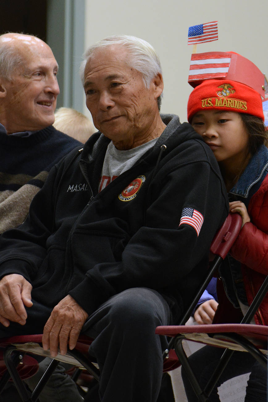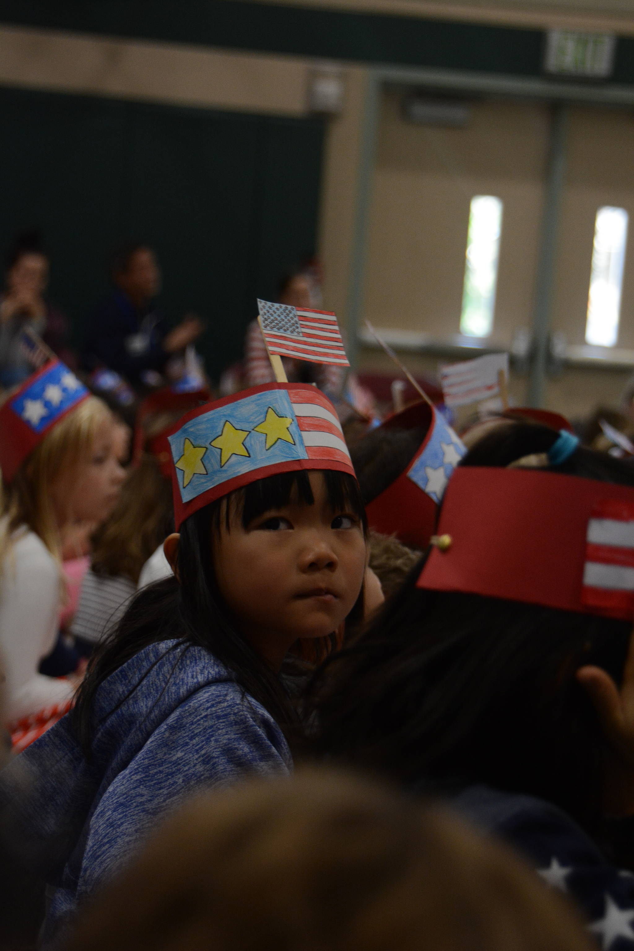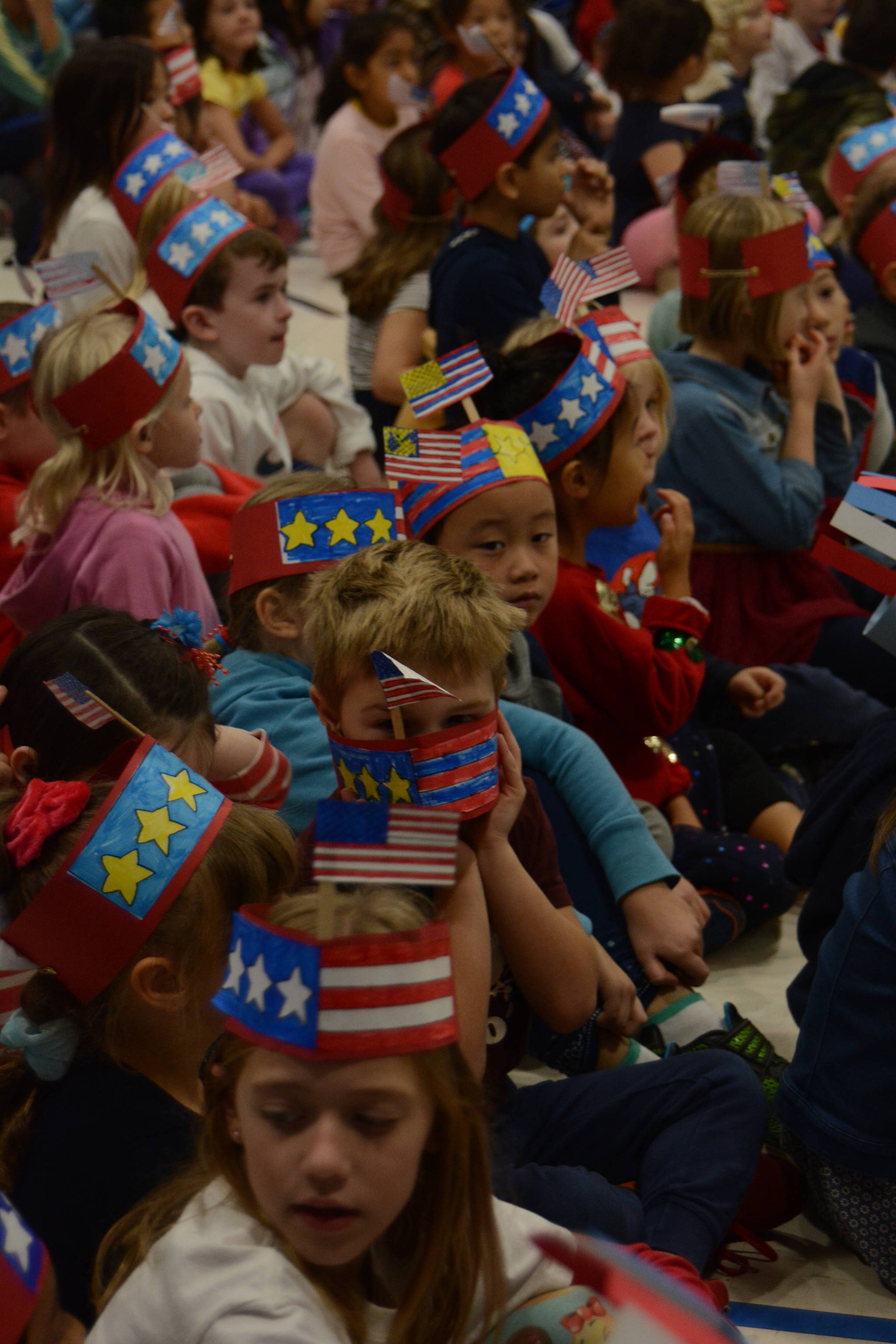 Little voices sang in unison “The Land of the Free and the Home of the Brave” and “This Land Is Your Land” together while on top of the school stage sat the students’ parents and grandparents who had served in various branches of the military.