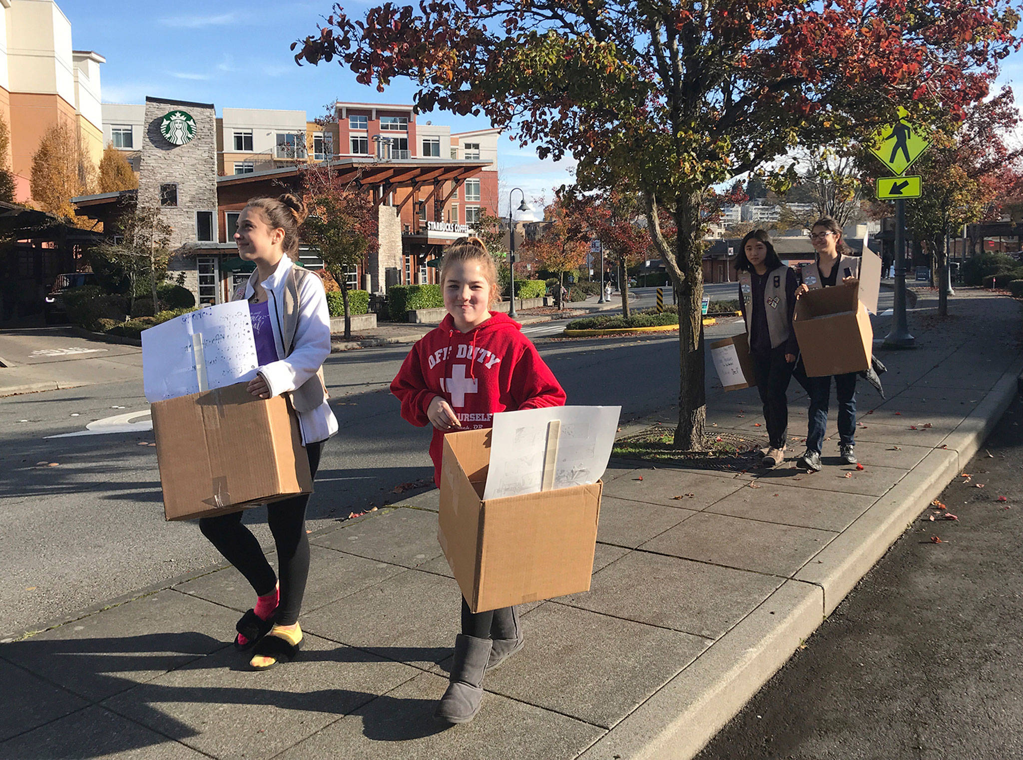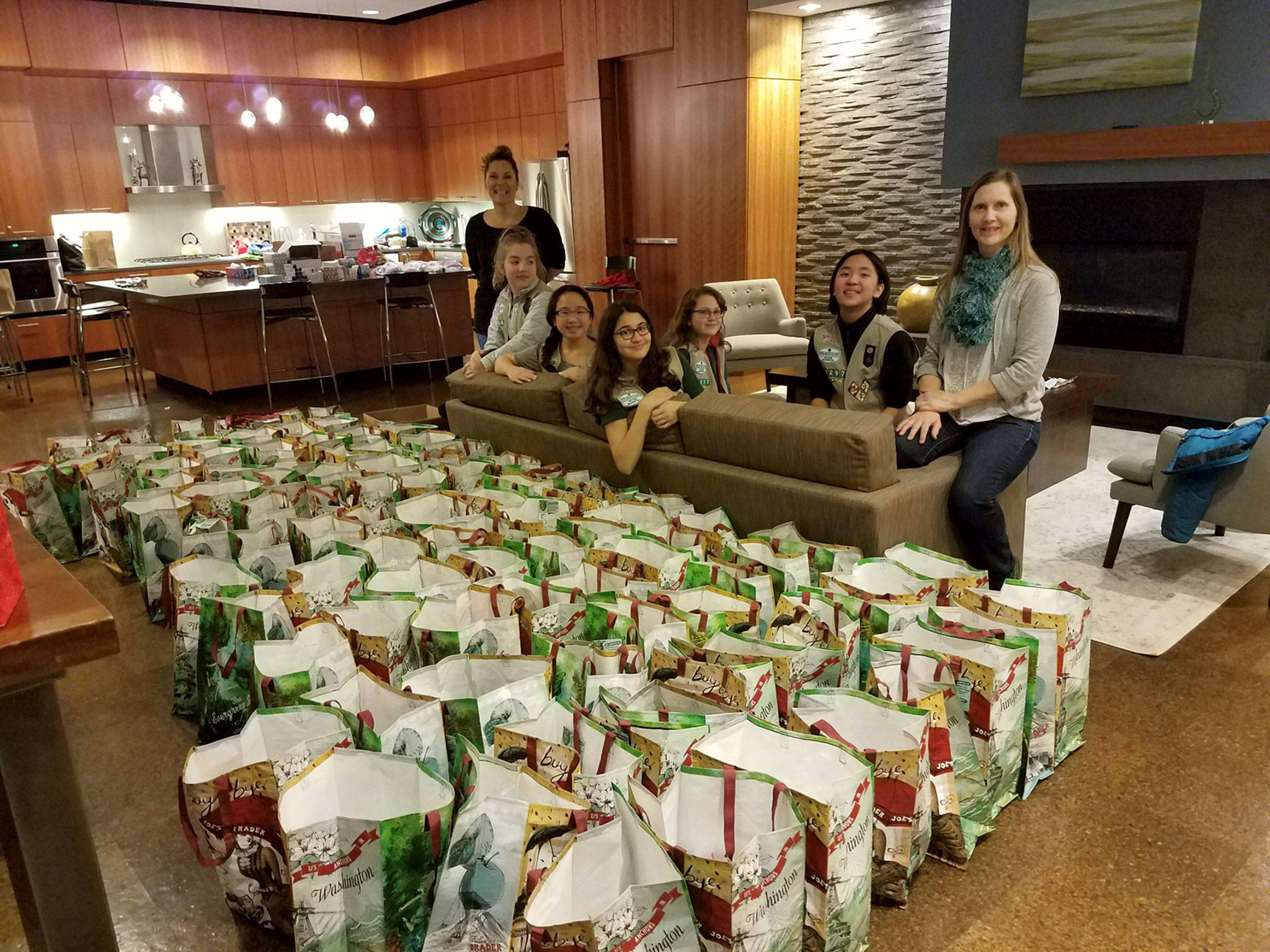 Cadette Girl Scout Troop 44297 of Mercer Island went to Pioneer Square in Seattle on Christmas morning, for their second annual “Morning of Giving.”