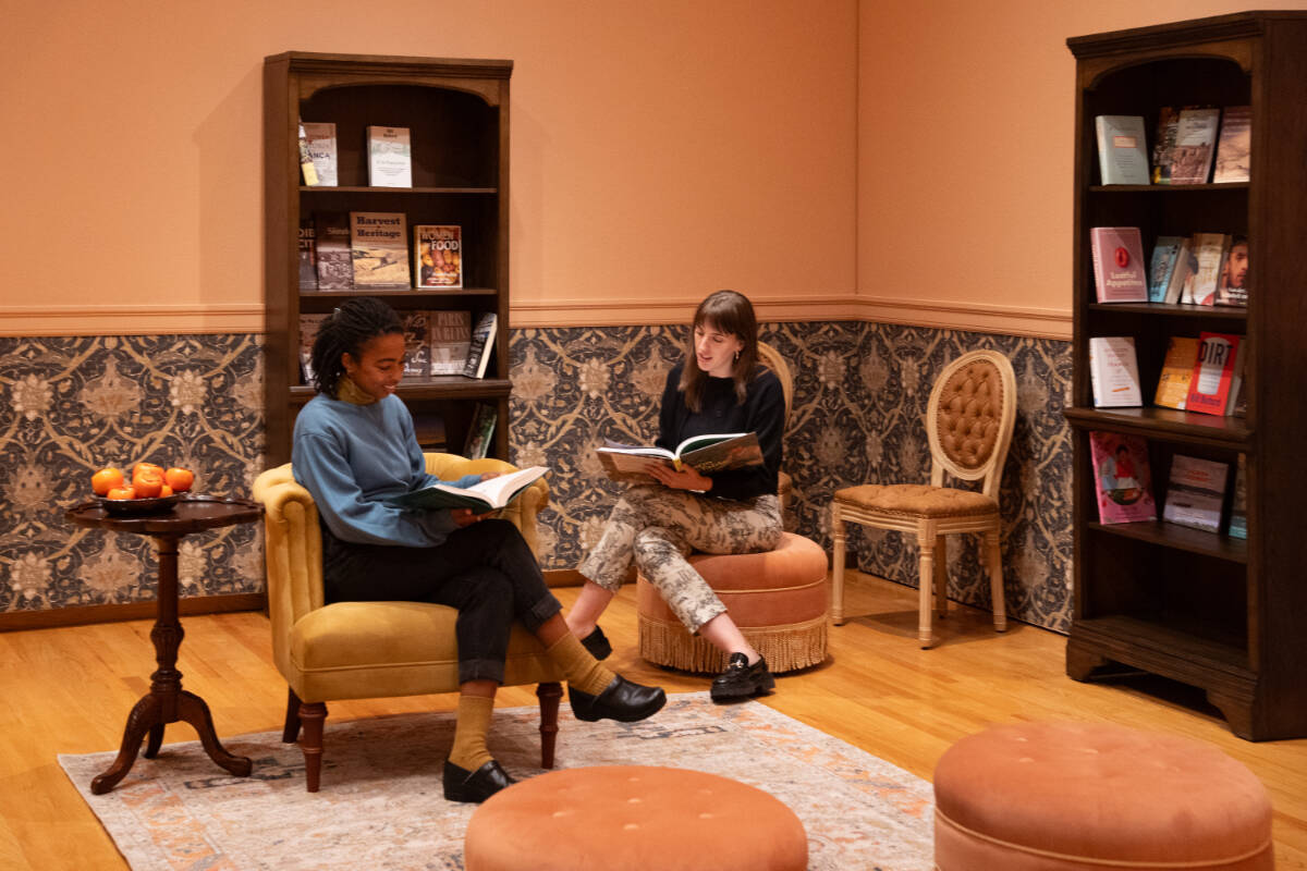 Visitors can take a seat at the exhibition’s communal “dinner table,” where food-themed conversation starters invite connection with other art- and food-lovers. For a quieter moment, a cozy reading nook, featuring a curated selection of books in partnership with the Seattle Public Library, offers space to linger.