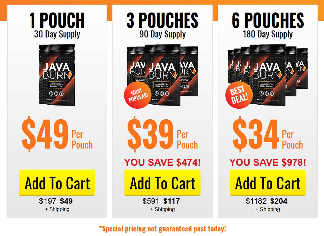 You can buy Java Burn to help you achieve your weight loss goals available for sale at their official website JavaBurn.com. This eliminates all middlemen and brings you Java Burn directly from the manufacturer. By doing so you avoid having to pay extra and can ensure that you get a great deal. Currently, Java Burn is available for purchase in 3 different formats, which are divided on how many doses they contain. This ranges from the small 30-day pack, medium 90-day pack, and 180-day pack. The pricing for each of these packs varies and is as follows: