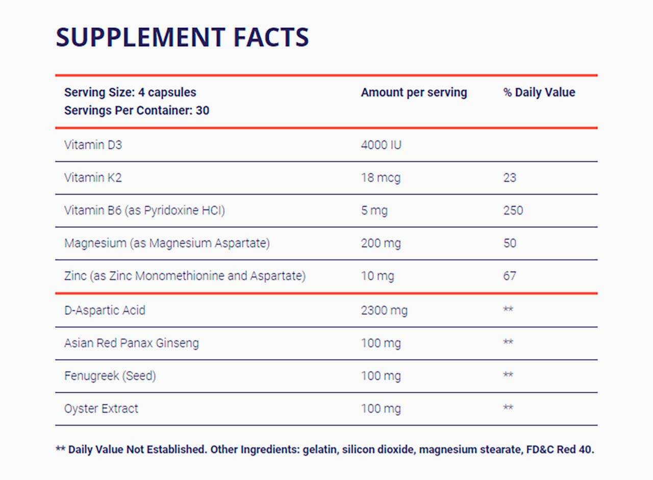 D-Aspartic Acid: D-aspartic acid is an amino acid responsible for the secretion of luteinizing hormone in the pituitary gland. Improving luteinizing hormone production directly influences the Leydig cells in the testes to secrete more testosterone to flow freely in the bloodstream. In just two weeks, men taking D-AA were able to increase testosterone levels up to 42%.