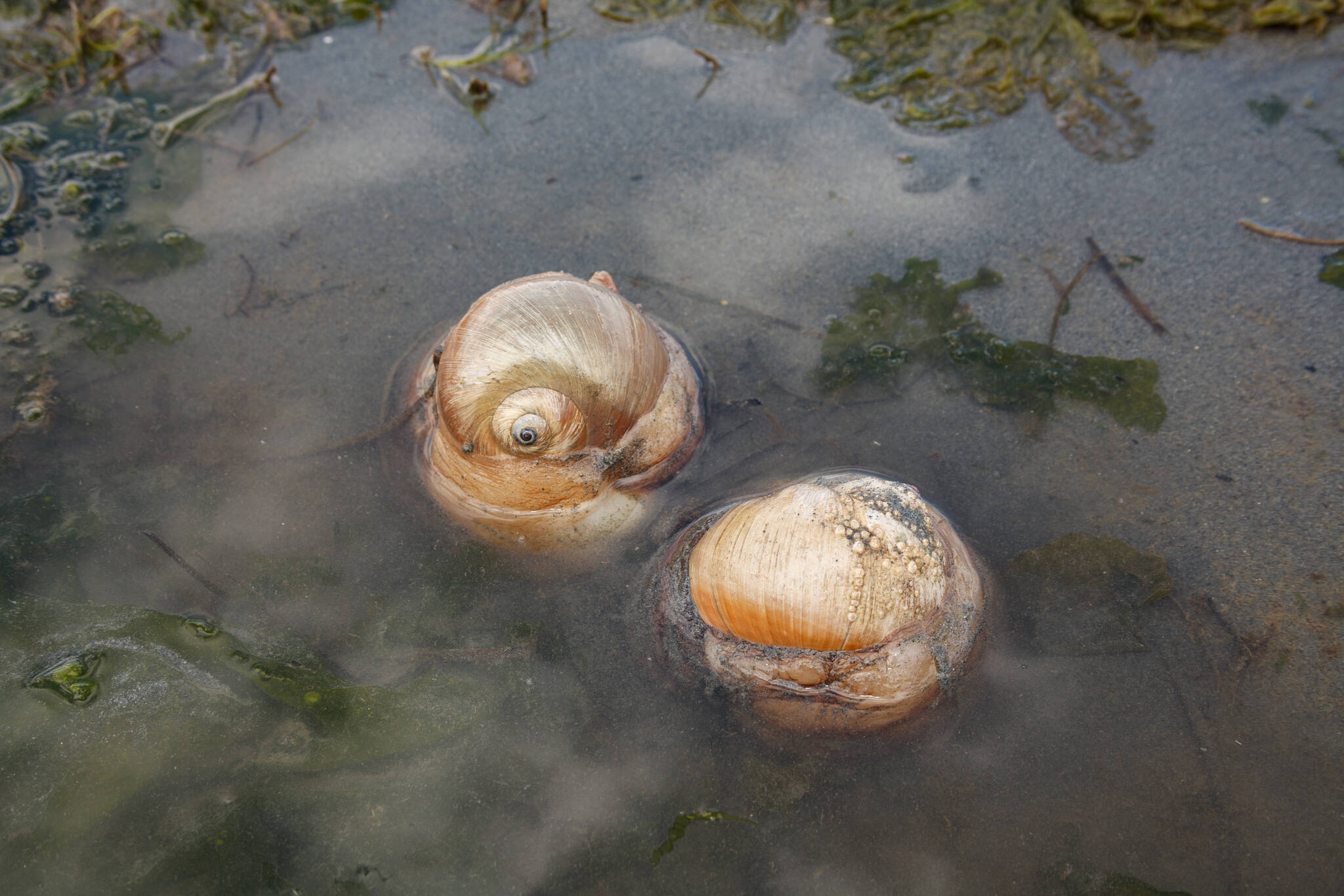 One of those predators, and one of the top predators in the Puget Sound’s seagrass bed ecosystems, is the moon snail. They are gigantic mollusks larger than the size of the average fist. Their soft body is so large that it cascades out of their baseball-sized shell.