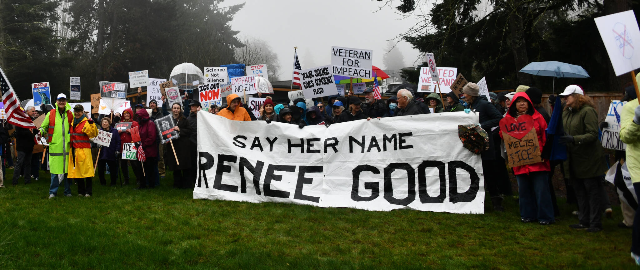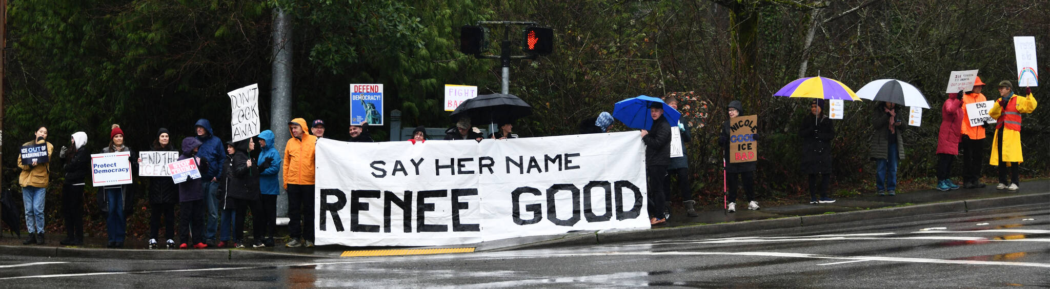Mercer Islanders led an anti-ICE protest from 3-4 p.m. on Jan. 11 at Island Crest Way and SE 40th Street. Andy Nystrom/ staff photo