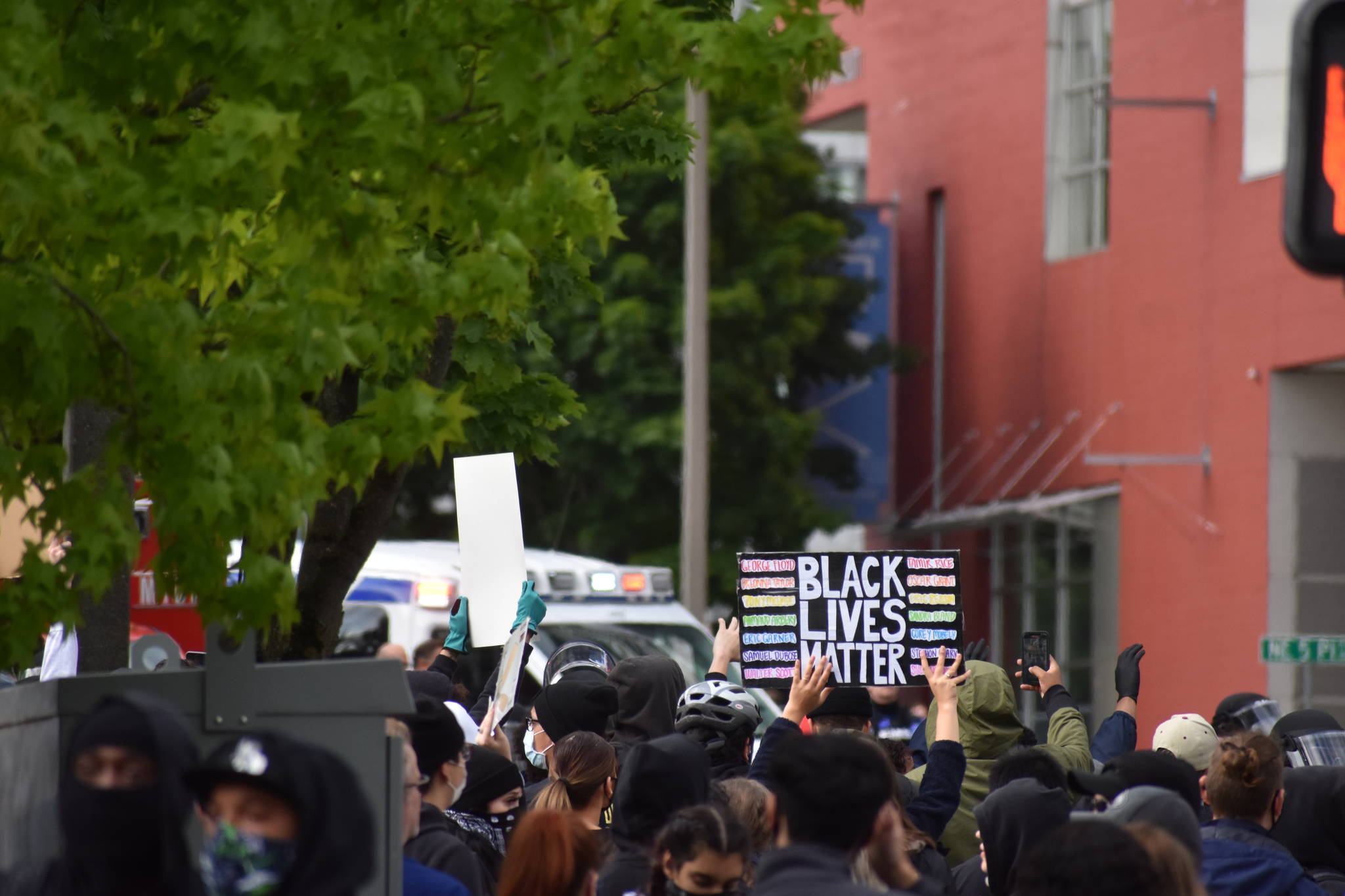 Police deployed smoke and tear gas to move the protesters. With smoke still filling the air, one protester told the Bellevue Reporterthat she saw people walk up to the peaceful protest and start throwing fireworks at police officers, and that was when the tear gas from officers and window smashing from looters began.