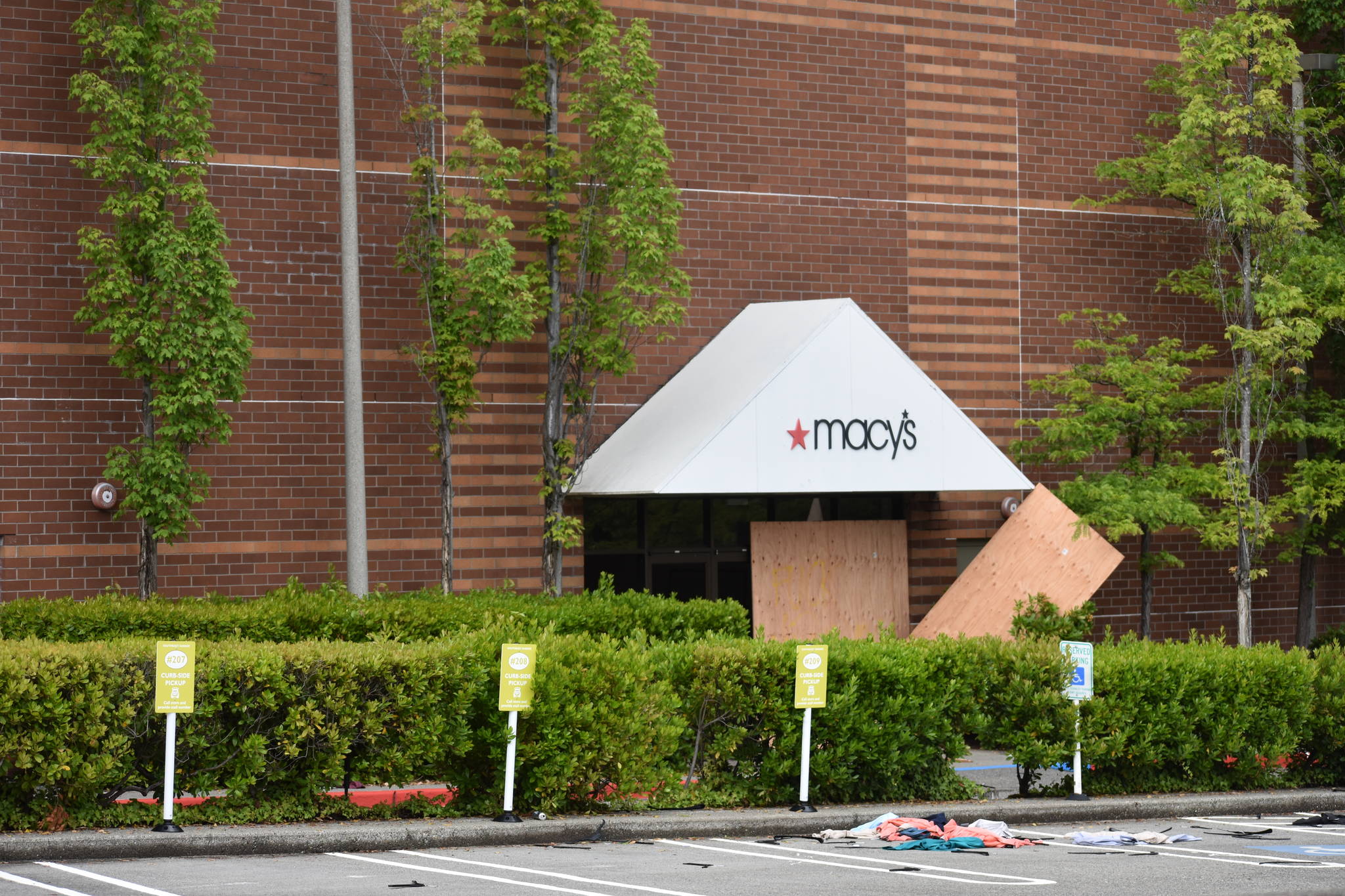 Next to the protest, groups of people were moving in and out of several Bellevue Square mall entrances carrying as much clothing, shoes and other items as they could.