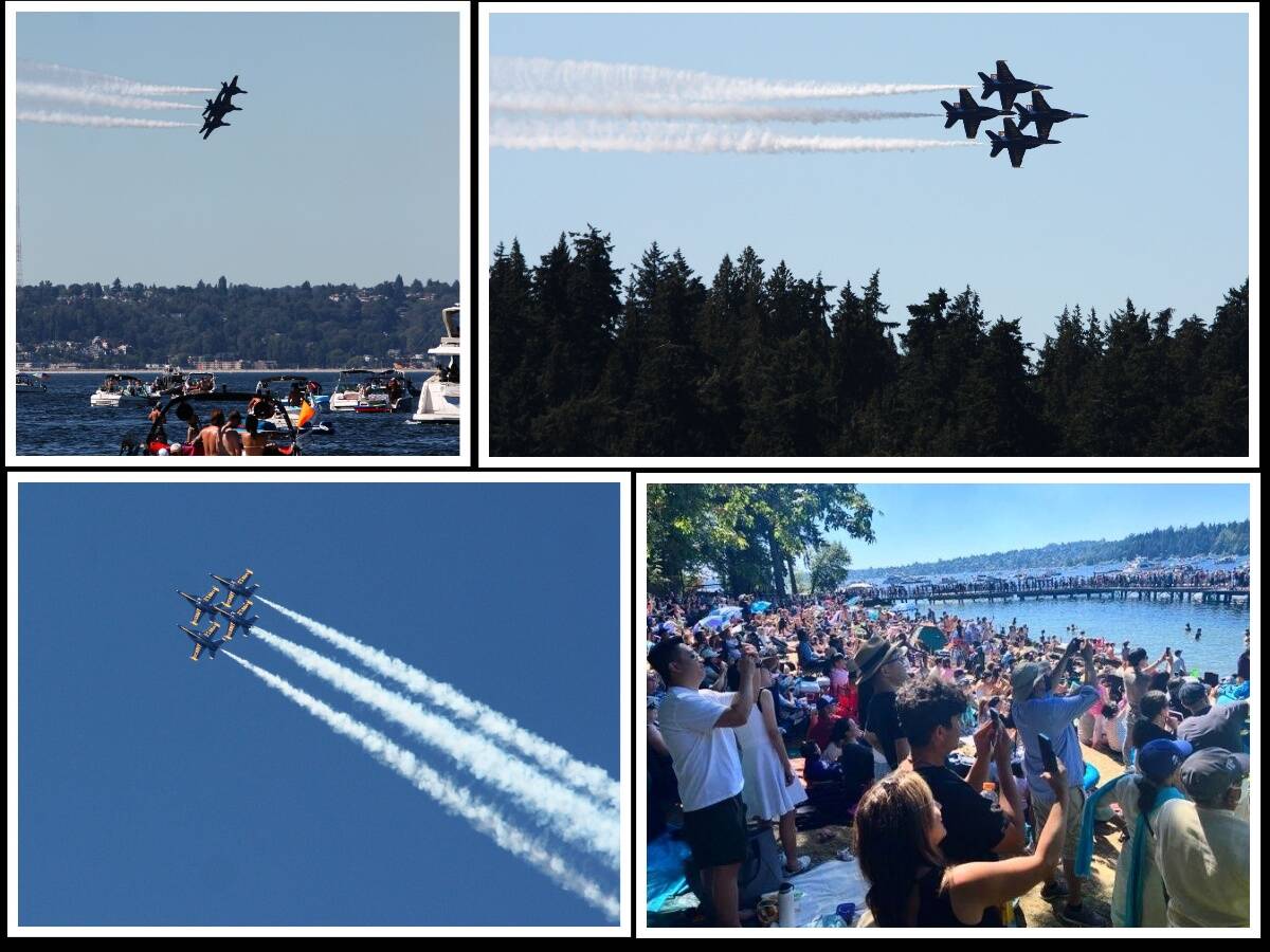 The sky was also filled with the rip-roaring U.S. Navy Blue Angels and other high-flying marvels, which could clearly be seen from Mercer Island hot spots like Groveland Beach Park and Aubrey Davis Park.
