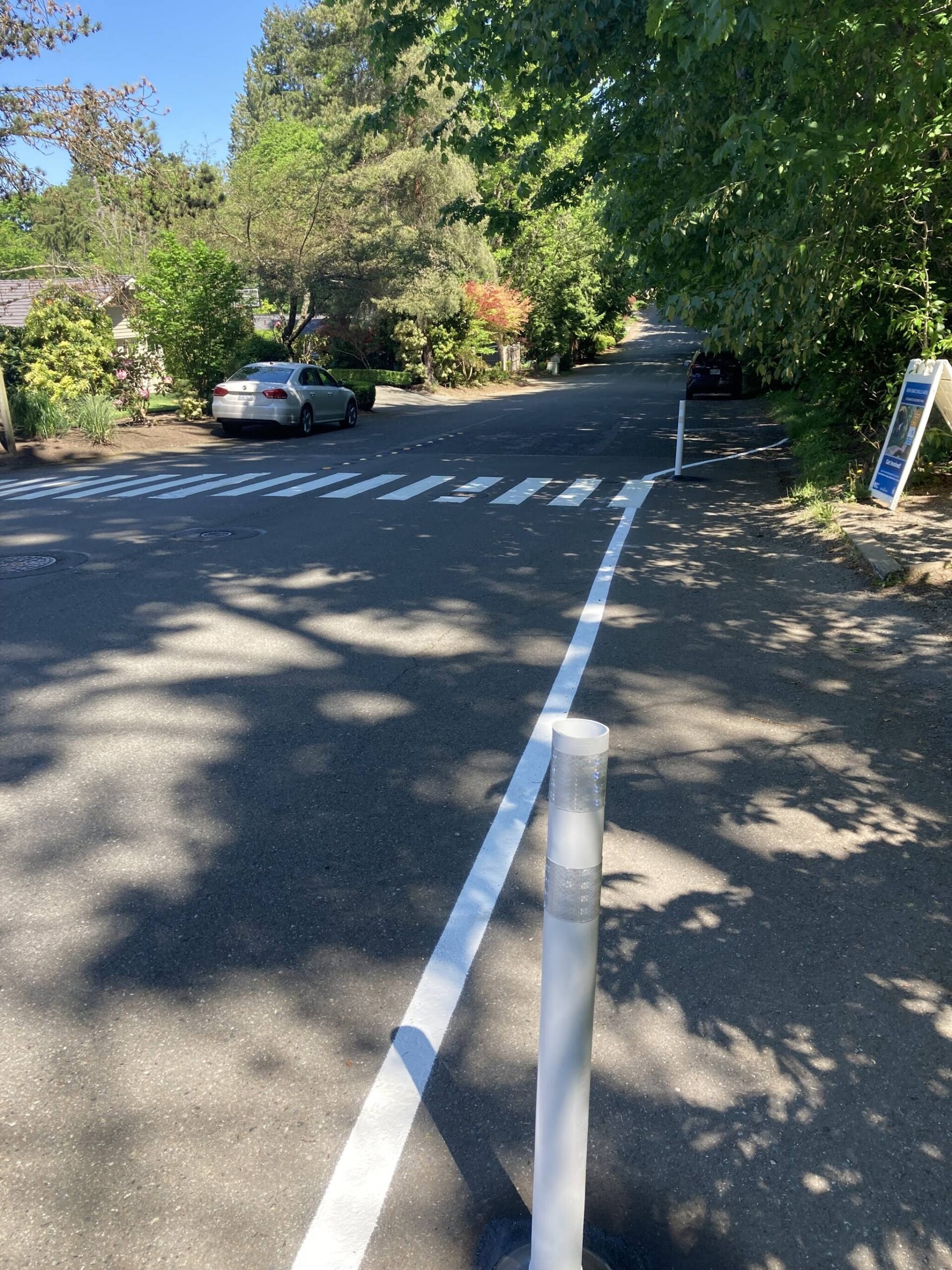 Recently, the city’s transporation engineer designed painted bump-outs where the trails reach 84th Avenue Southeast and the right-of-way team installed the pavement markings and a new painted crosswalk in the area. Since this is one of the sections where bicyclists exit Island Crest Park, the city aims to improve visibility of the trailhead and prompt drivers to begin calming their speeds now and prepare them for what’s forthcoming when the BSA opens. According to the city, the BSA is slated to open in the fall.