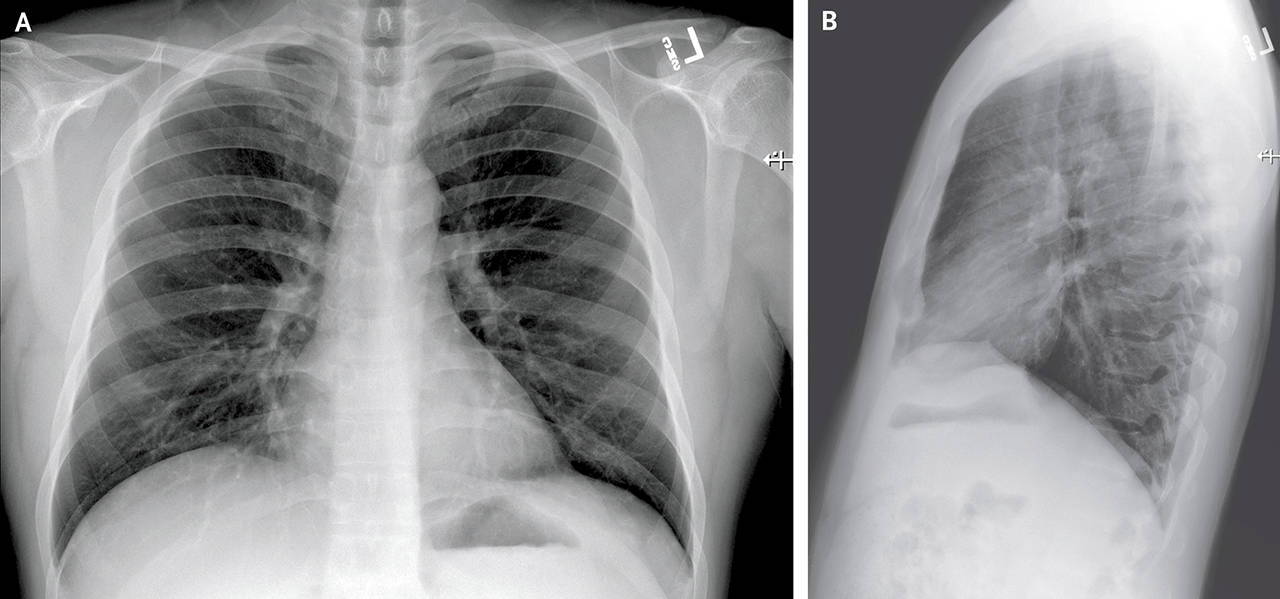 Posteroanterior and Lateral Chest Radiographs, January 19, 2020 (Illness Day 4).No thoracic abnormalities were noted (Snohomish Health District)