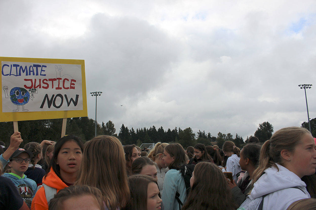 “It’s hard to focus on homework when your house is on fire,” eighth grader Anastasia Lavrinovich said before the crowd. “Today, we’re joining the millions of students around the globe in the climate strike… Instead of staying silent, we’re asking people to stand with us.”