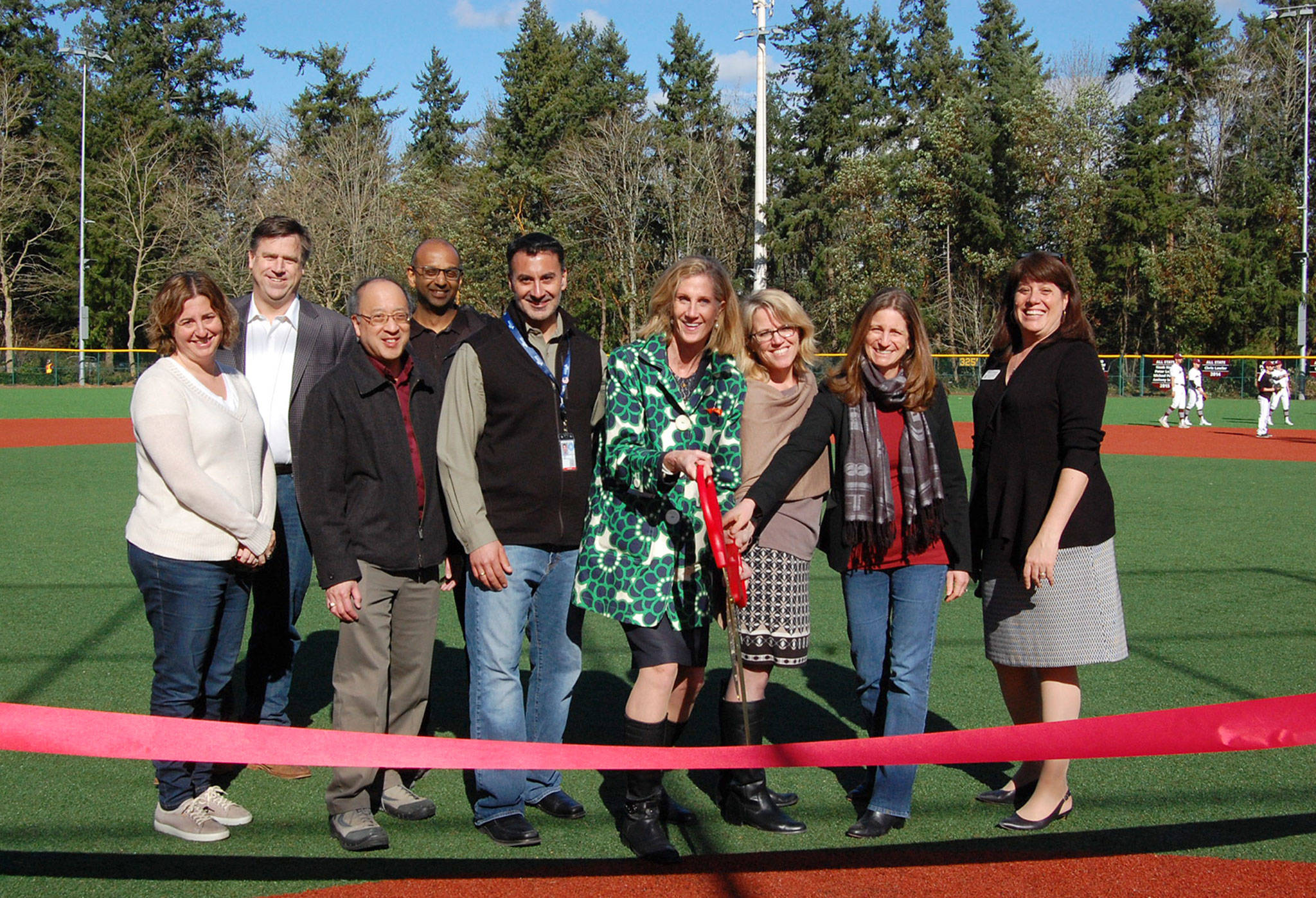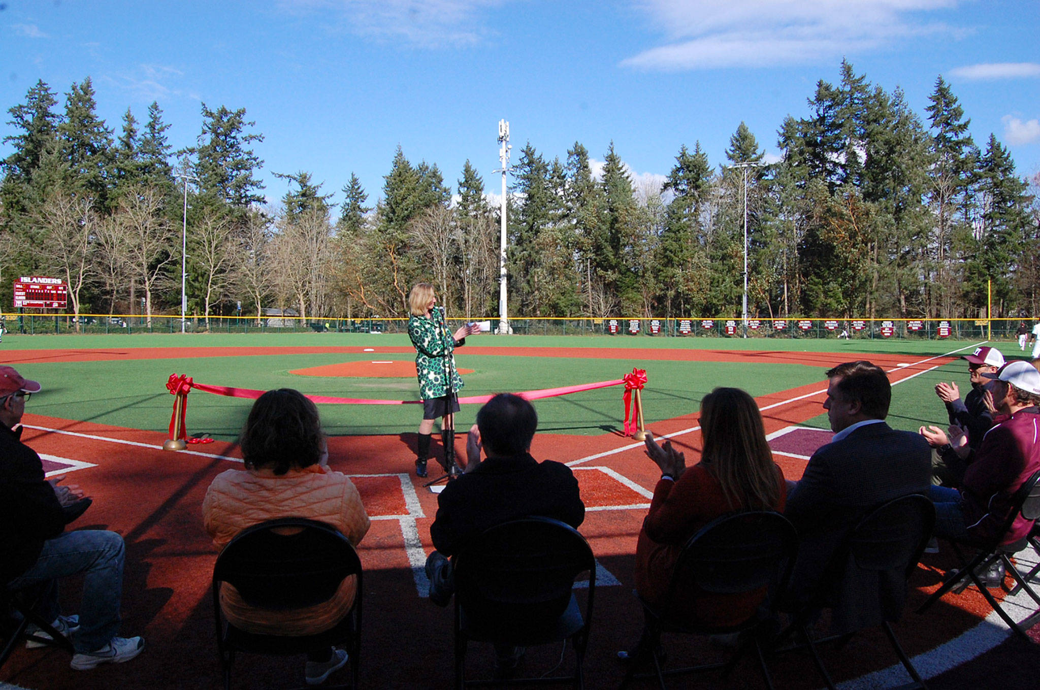 The city of Mercer Island formally re-opened the north field at Island Crest Park on March 14, with a brief ceremony hosted by Mayor Debbie Bertlin right before the first varsity baseball game to use the new facility.