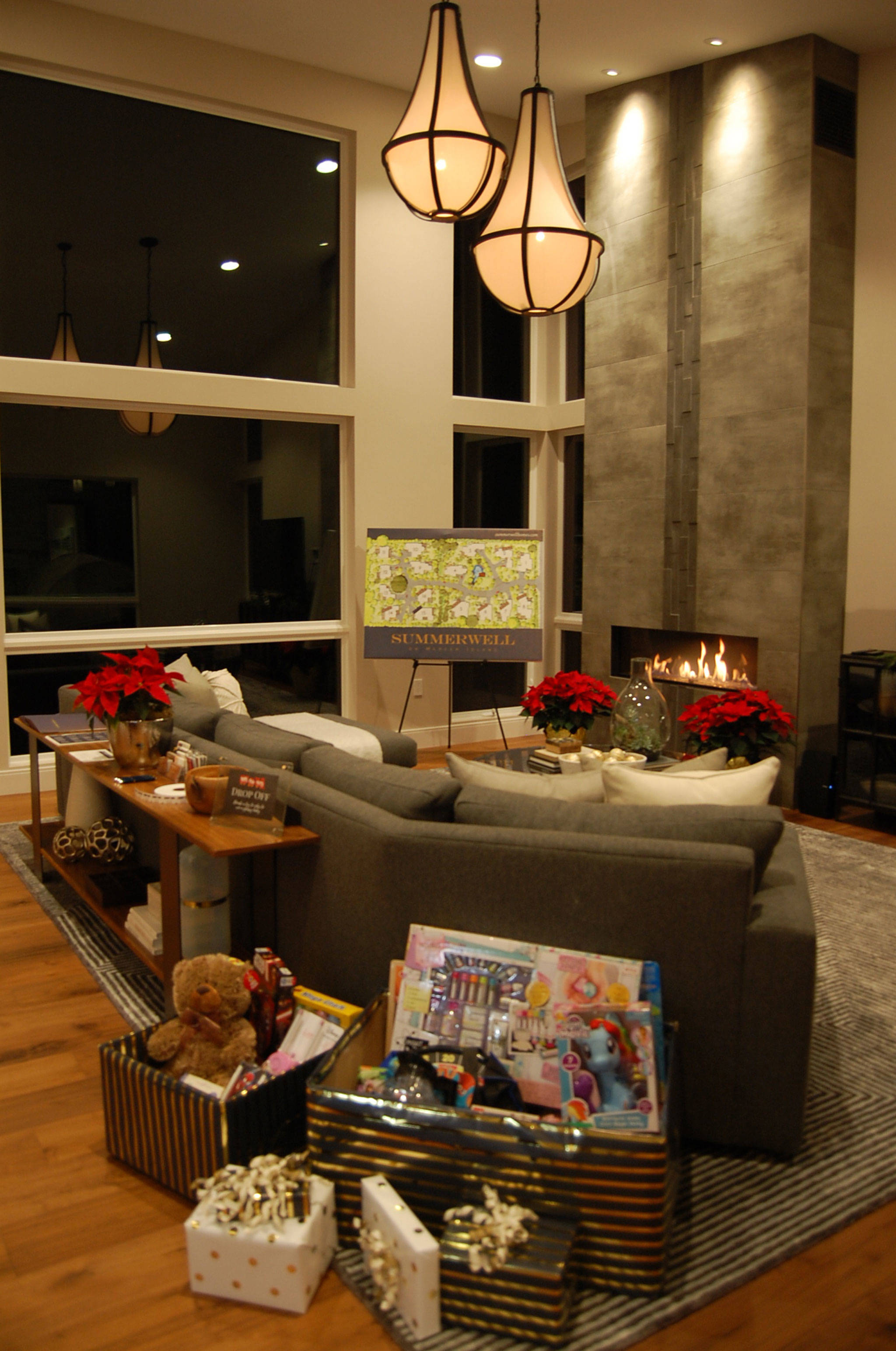 All were invited to join the holiday cheer as Mercer Island’s first new neighborhood in 30 years was lit up for the holidays. Realtors from Coldwell Banker Bain gave tours of two of the finished homes (Lot 15 and Lot 7), and hot cocoa, marshmallows and cookies were provided for the kids. Visitors who brought an unwrapped toy for Toy for Tots were entered to win a glassybaby candle.