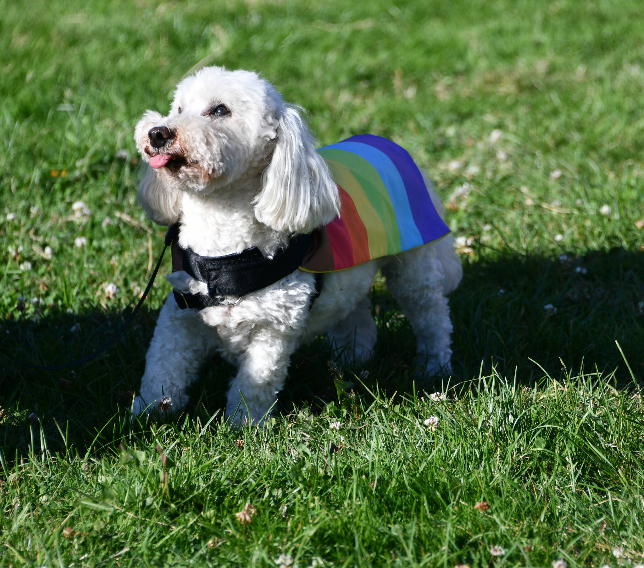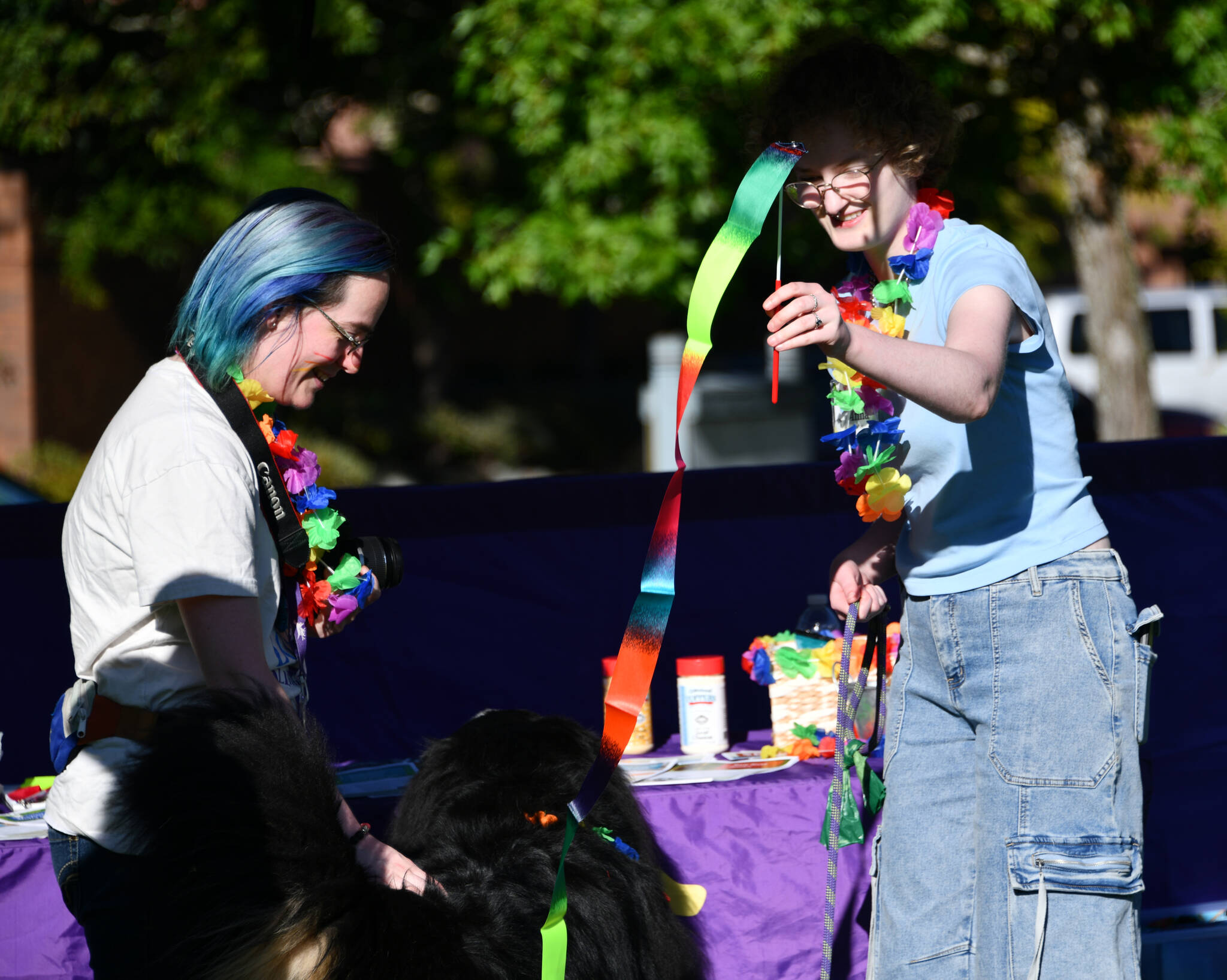 Emily said the friends were having a good time as music bounced from the speakers off in the distance, people — and even a dog or two — donned Pride capes while a few attendees jogged around the lawn shooting bubbles into the air. Smiles were abundant on this day as well.