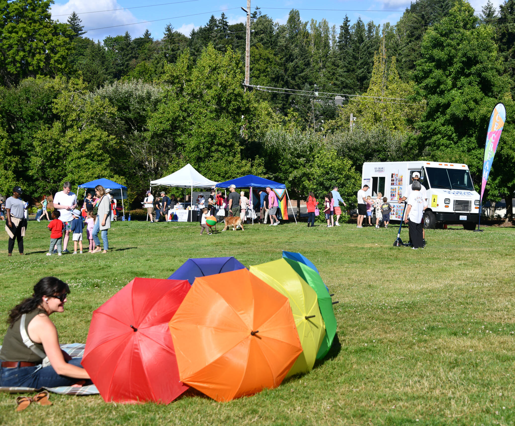 Pride in the Park featured a wealth of information, including booths from the city, Mercer Island Natural Resources, Mercer Island Visual Arts League, GenPride, PFLAG Bellevue Eastside (with a “Leading With Love” banner), Eastside Pride PNW, All the Best Pet Care, Island Cats Veterinary Hospital, Congregational Church on Mercer Island (with “A Just World for All” banner) and more.