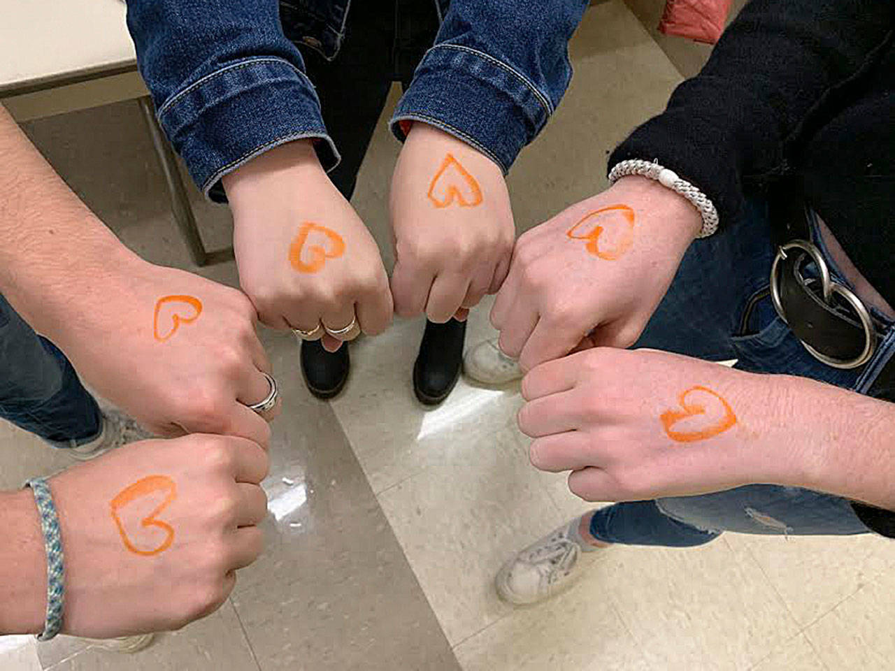 The awareness day project spanned two days. The first day, Nov. 15, she encouraged MIHS students to wear black and orange to promote awareness. Hartman and fellow marketing students designed and hung posters around the school to spread awareness. During lunch, Hartman and other classmates drew orange hearts on peers’ hands.