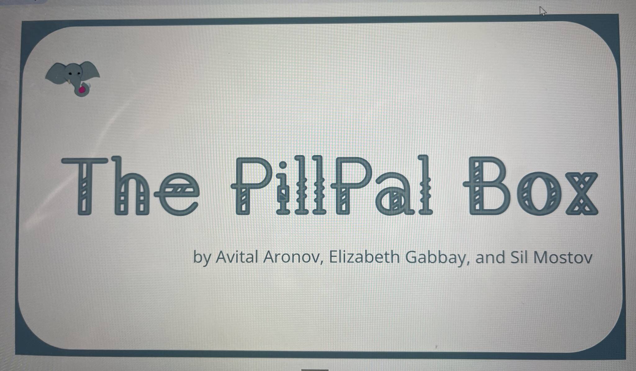Aronov’s family provided the inspiration for the project, and a presentation slide describes the scenario: She came up with the idea for the pill box, “When she saw her mother, who lives on the West Coast, struggling with reminding her grandfather, who lives on the East Coast, to take his medications every day. After consulting with her friends who take medications, she realized that there was a great need for a device that helped people with taking their medications properly.”