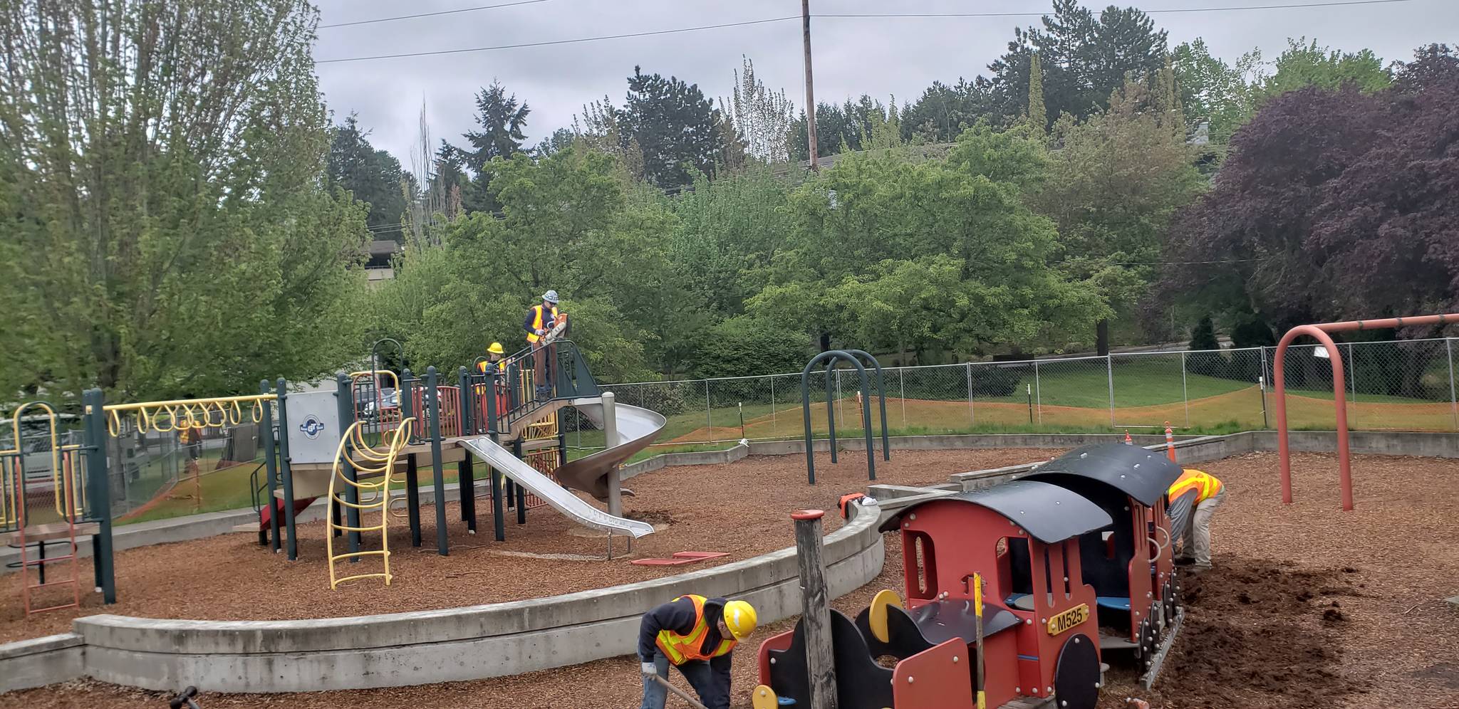 The playground is currently closed since the play equipment has reached the end of its useful life after 19 years, and city crews removed the equipment, except the swings, on May 8.