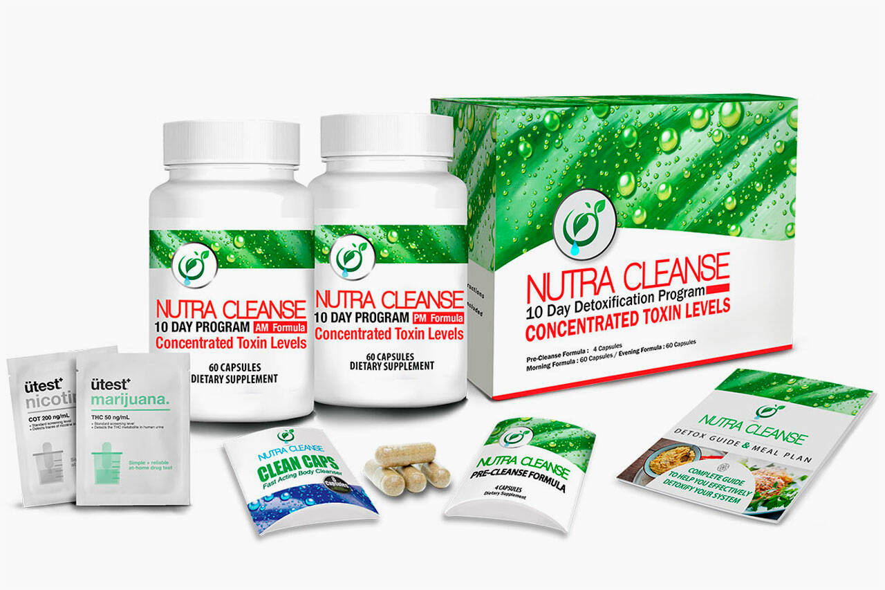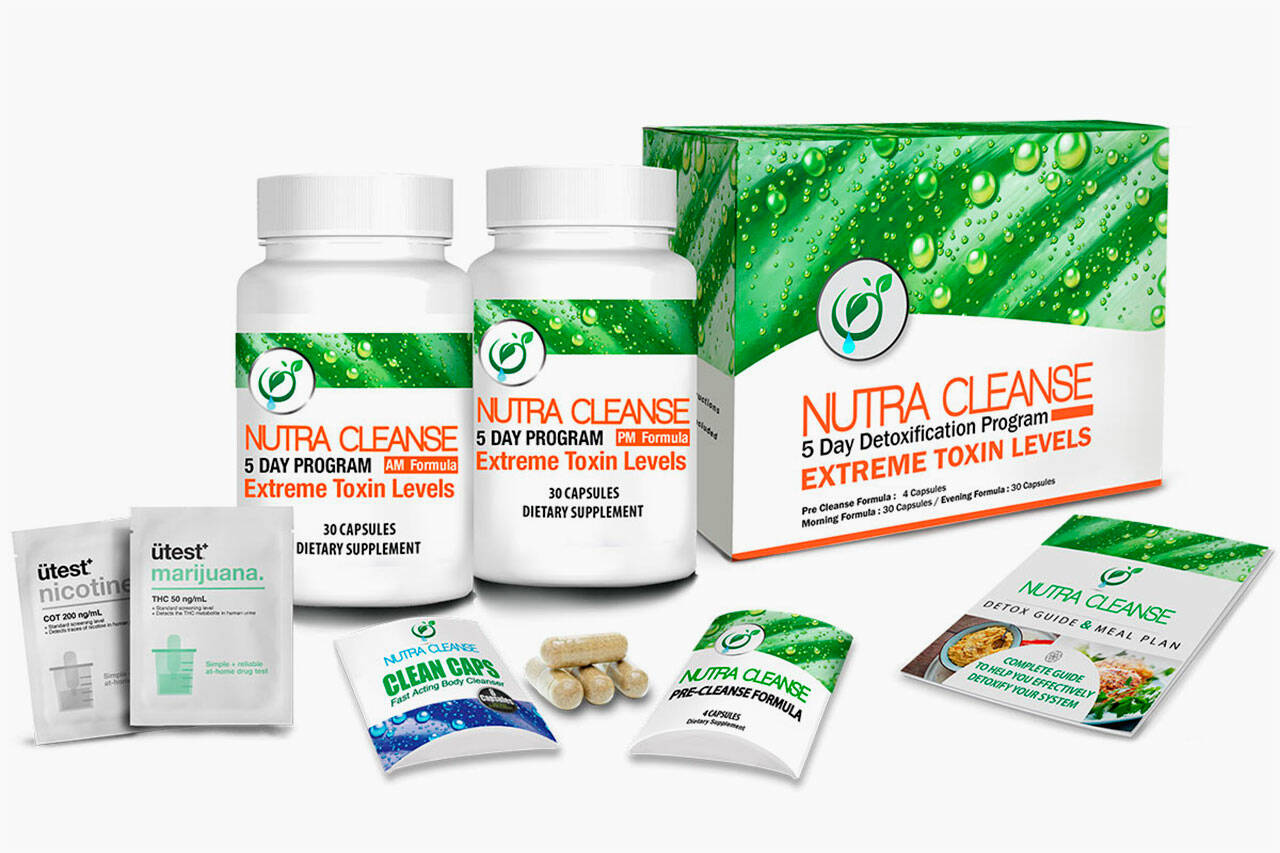 It includes three home-testing kits, herbal detox pills, a pre-cleanse formula, a detox meal plan, and a digital detox guide. All supplements included in the program contain proprietary blends by Nutra Cleanse.