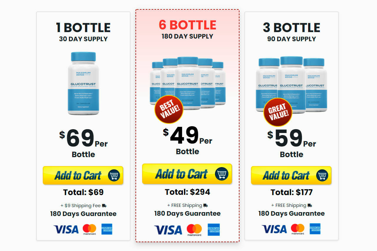 The GlucoTrust supplement has made reducing blood sugar levels not only easier but also cheaper! When you head to their official website, you will find GlucoTrust in three different purchasing packs as we have listed below: