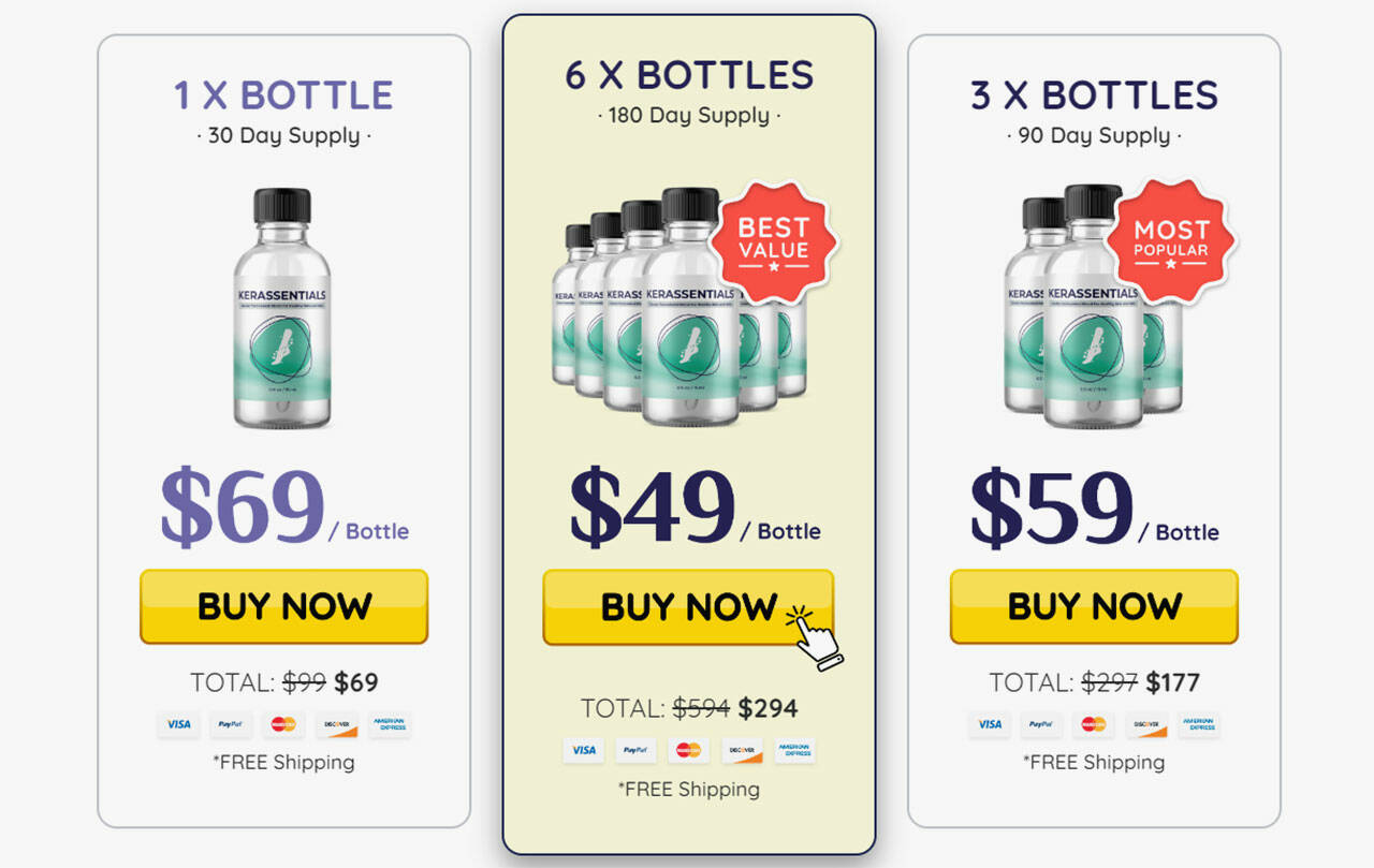 - Purchase three bottles of Kerassentials: $177 + Free shipping