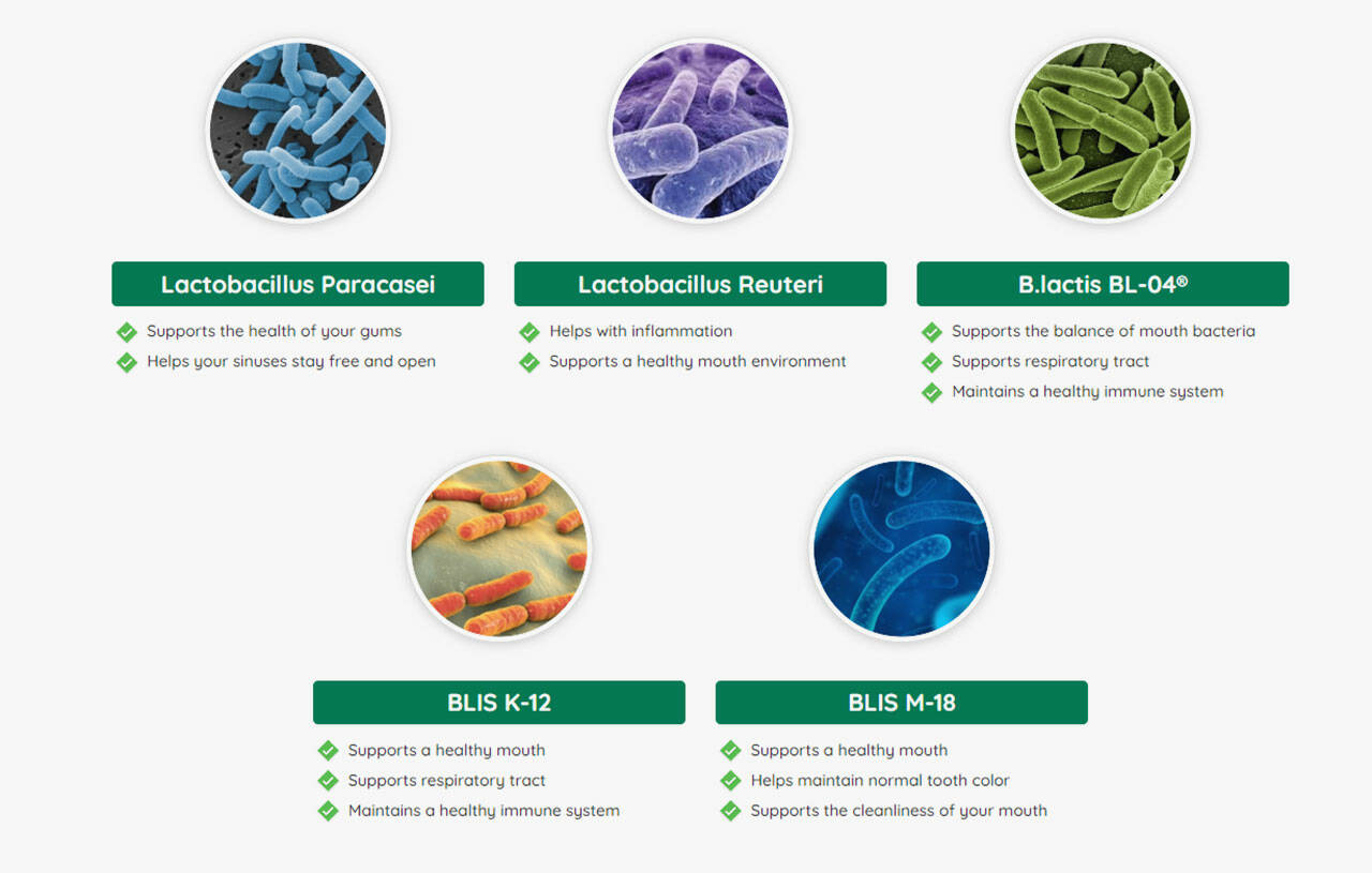 - The dental and oral health supplement supports a healthy oral microbiome with the help of 3.5 billion probiotic strains.