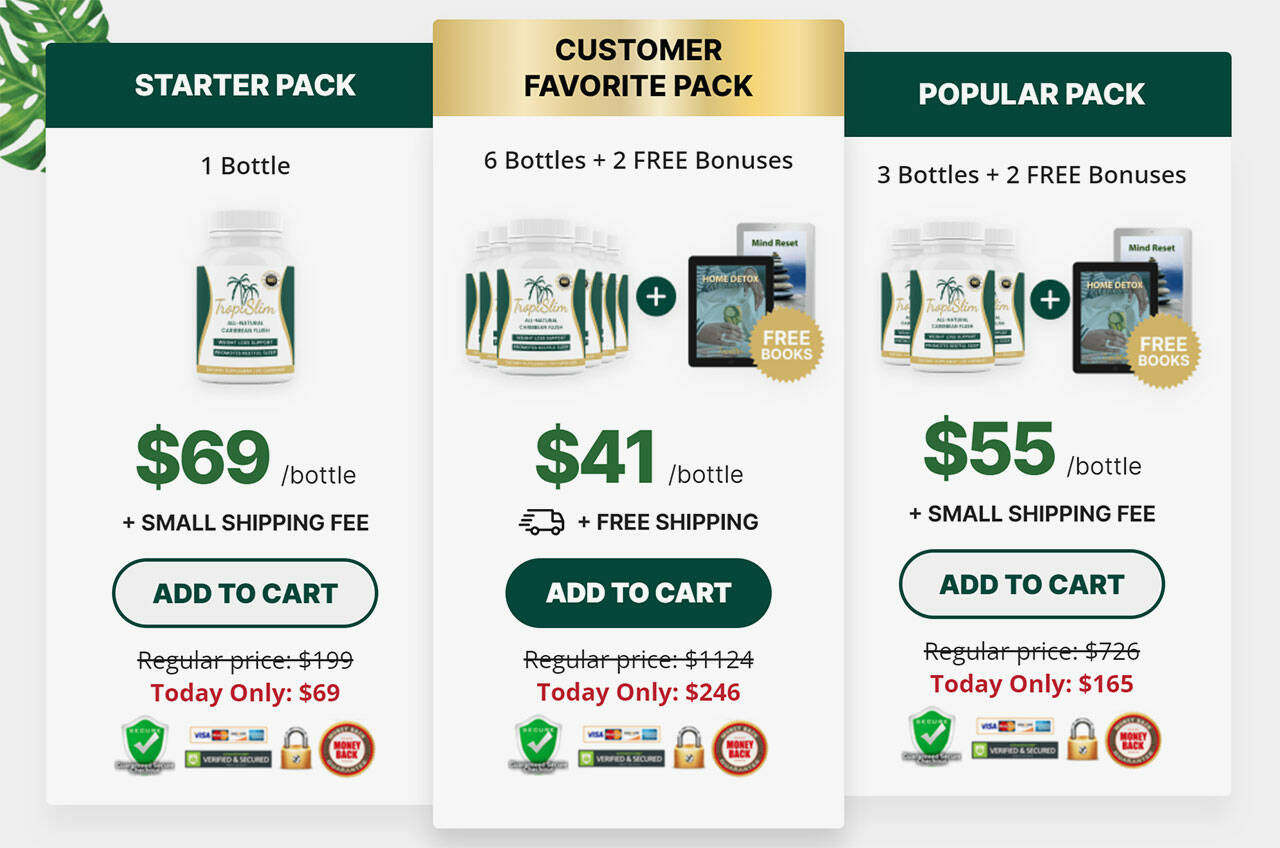 Each TropiSlim bottle is designed to last one month. As discussed briefly, the longer individuals are on this supplement, the higher the chances of mental and physical transformations. To encourage large purchases, the creators have decided on the following pricing: